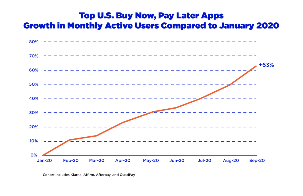 During that same month, BNPL apps operating in the U.S. also witnessed a 63% increase in MAUs (Monthly Active Users) when compared to January 2020.