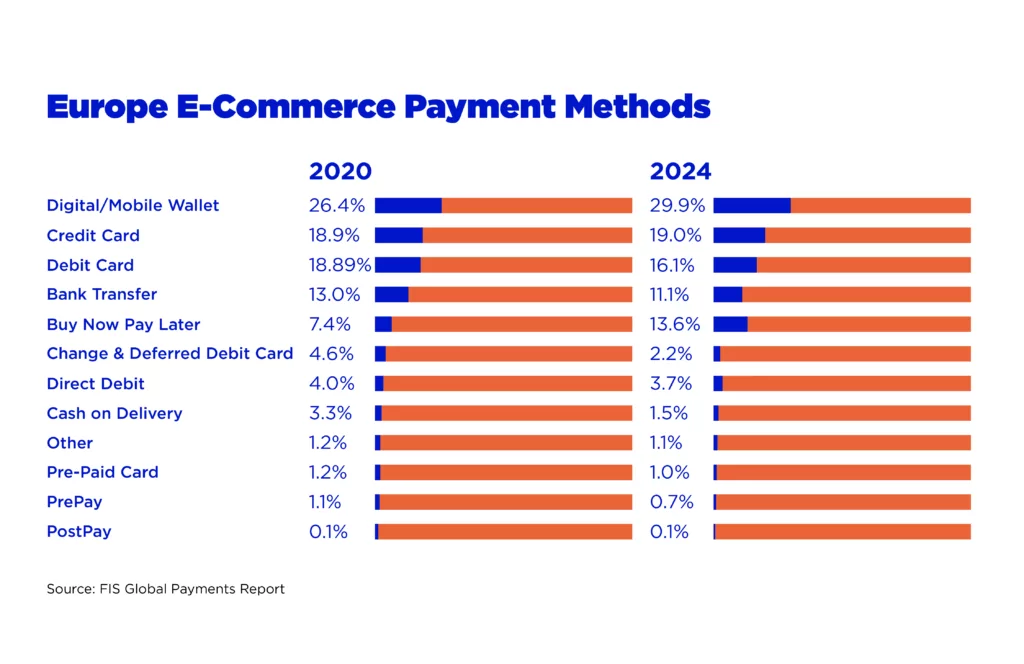 In Europe and the U.K., the 2020 FIS Global Payment Report results predict that BNPL use in Europe and the United Kingdom will almost double by 2024 (13.6%) when compared to 2020 (7.4%).