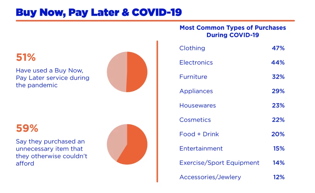 51% of the surveyed respondents said they used BNPL services during the COVID-19 pandemic, especially for clothing (47%), electronics (44%), and furniture (32%).
